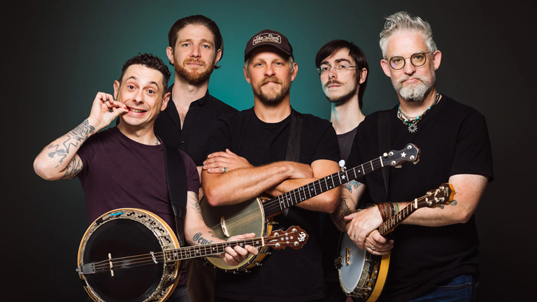 With no less than three outrageous, unlawful, and audacious banjos – plus fiddle, mandolin, and guitar – Gadan delivers a powerful “strings-only” sound, driven by a relentless rhythmic pulse. Their high-energy live performances and magnetic stage presence prove you don’t need drums to make people groove.
